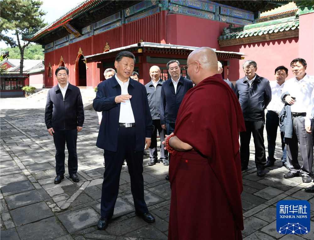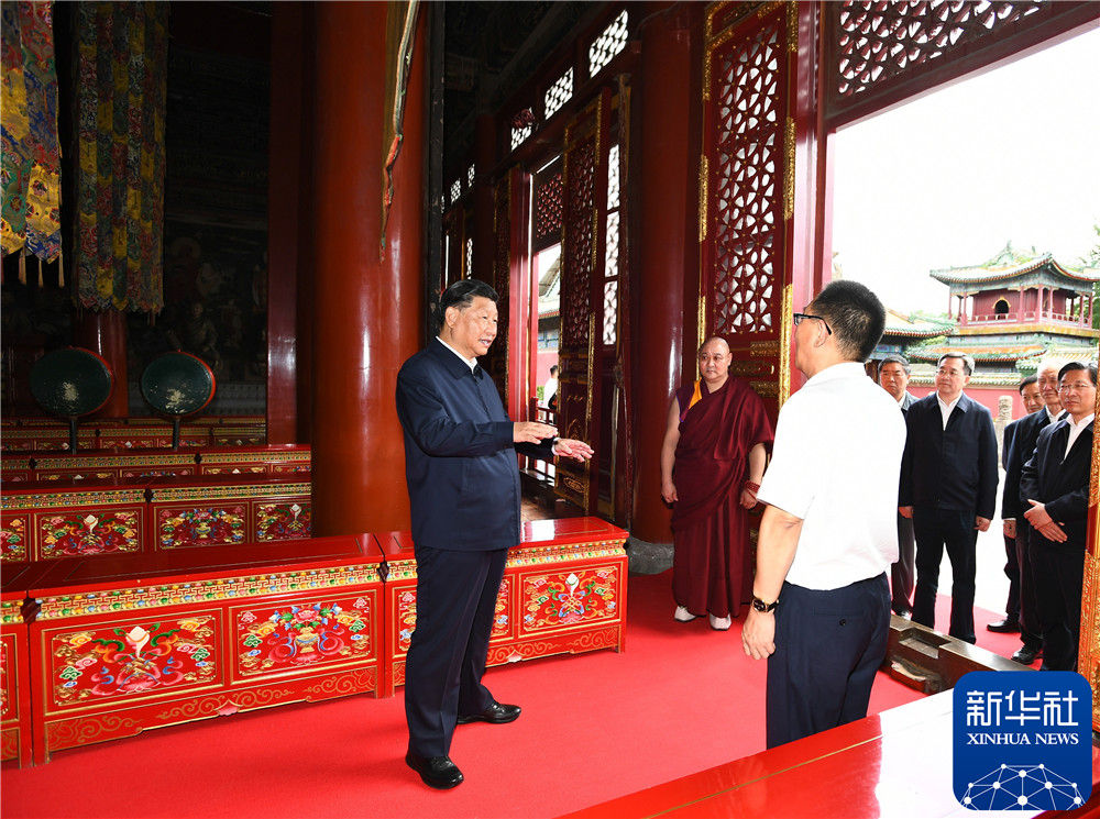 离开避暑山庄,习近平前往普宁寺考察调研。普宁寺始建于1755年,属于典型的汉藏合璧式寺庙。习近平仔细察看有关历史碑刻以及天王殿、大雄宝殿等建筑,听取宗教工作等情况汇报。习近平强调,要坚持党的宗教工作基本方针,坚持我国宗教的中国化方向,积极引导宗教与社会主义社会相适应,坚持独立自主自办原则,全面贯彻党的宗教信仰自由政策,弘扬爱国爱教优良传统,创建良好宗教环境,依法依规管理宗教事务,促进宗教更好顺应社会、服务社会、履行社会责任。