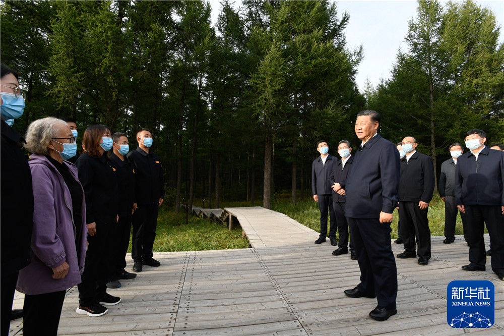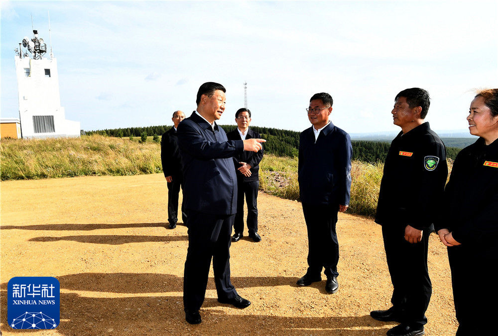 23日下午,习近平首先考察了位于河北省最北部的塞罕坝机械林场。八月的塞罕坝,林海苍翠连绵。林场始建于1962年。近60年来,塞罕坝林场的建设者们听从党的召唤,在“黄沙遮天日,飞鸟无栖树”的荒漠沙地上艰苦奋斗、甘于奉献,创造了荒原变林海的人间奇迹。习近平来到海拔1900米的月亮山,远眺林场自然风貌,听取河北省统筹推进山水林田湖草沙系统治理和塞罕坝机械林场情况介绍,对林场打造人防、技防、物防相结合的一体化资源管护体系,守护森林资源安全取得的成绩给予肯定。习近平强调,我国人工林面积世界第一,这是非常伟大的成绩。塞罕坝成功营造起百万亩人工林海,创造了世界生态文明建设史上的典型,林场建设者获得联合国环保最高荣誉——地球卫士奖,机械林场荣获全国脱贫攻坚楷模称号。希望你们珍视荣誉、继续奋斗,在深化国有林场改革、推动绿色发展、增强碳汇能力等方面大胆探索,切实筑牢京津生态屏障。月亮山上建有集防火瞭望和资源管护为一体的望海楼。习近平亲切看望驻守望海楼13年的护林员刘军、王娟夫妇,并登上望海楼,详细了解他们的日常工作和饮食起居情况,称赞他们默默坚守、无私奉献,守护了塞罕坝生态安全。