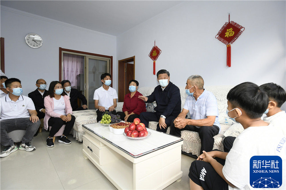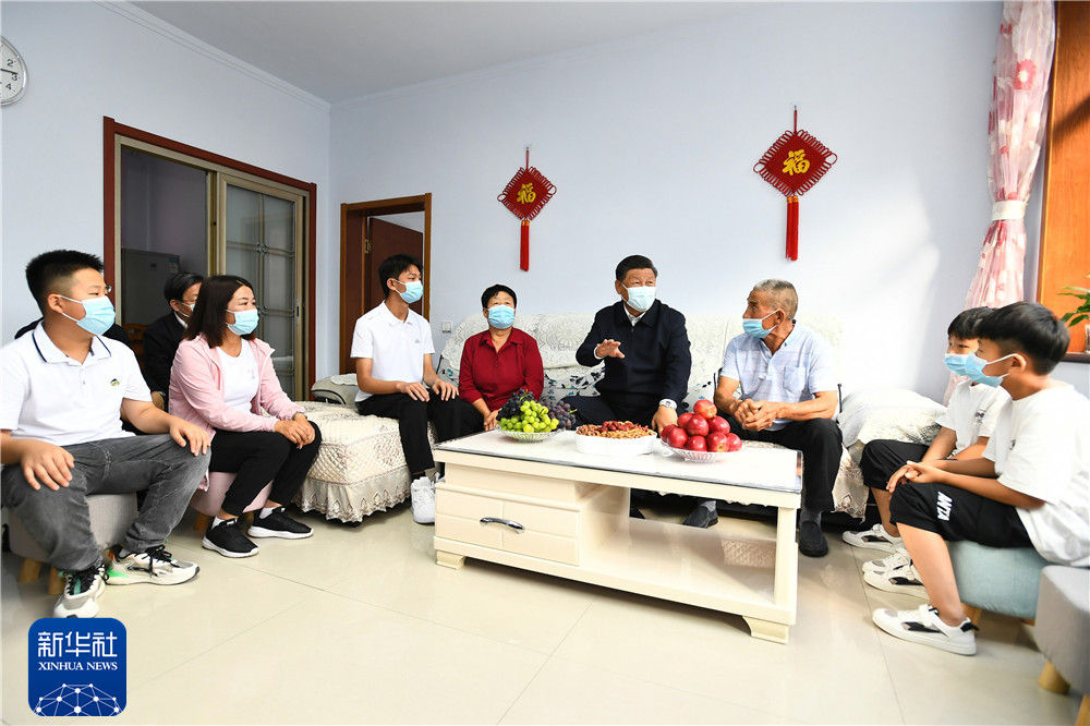 8月23日至24日,中共中央总书记、国家主席、中央军委主席习近平在河北省承德市考察。这是24日下午,习近平在双滦区偏桥子镇大贵口村同村民霍金一家人亲切交谈。新华社记者 谢环驰 摄