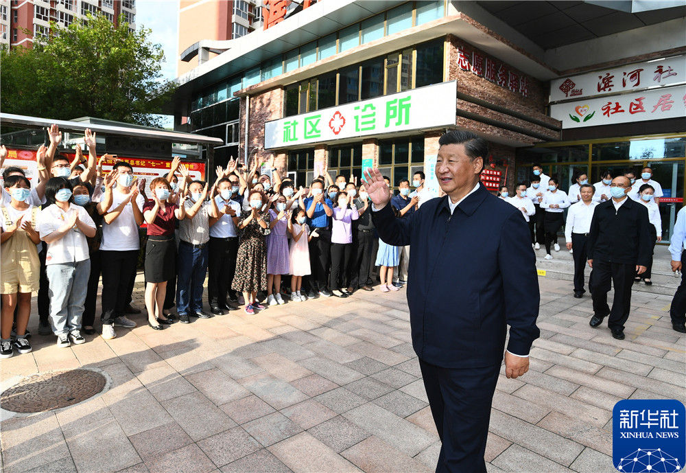8月23日至24日,中共中央总书记、国家主席、中央军委主席习近平在河北省承德市考察。这是24日下午,习近平在承德市高新区滨河社区考察时,向社区居民挥手致意。新华社记者 谢环驰 摄