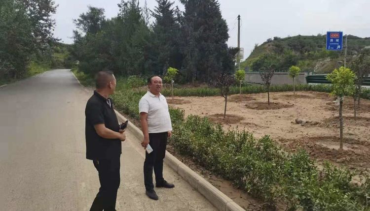 ▲8月26日,微子镇相关负责人实地查看国省道沿线“六乱”整治腾退空地绿化情况。