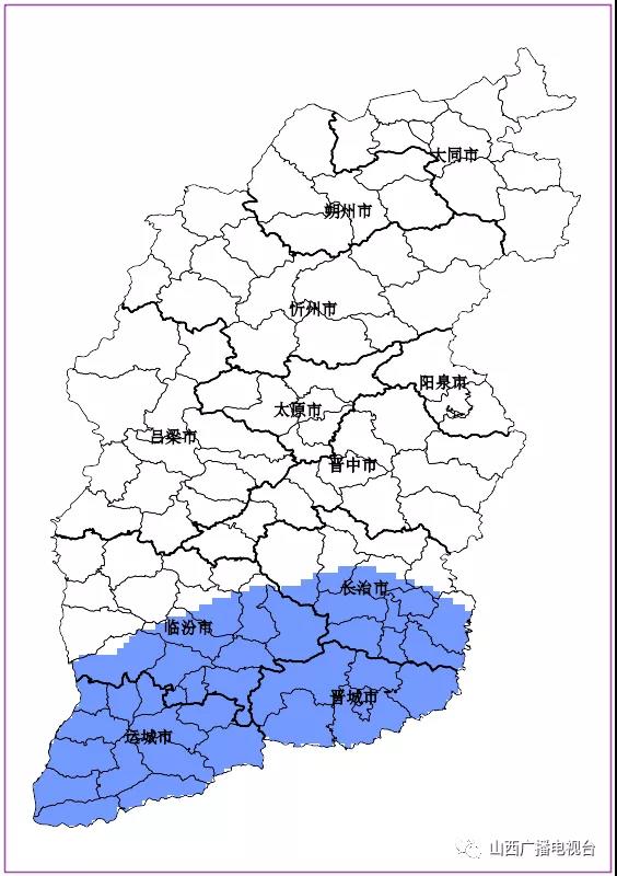 山西省气象台2021年8月30日14时30分发布暴雨蓝色预警,预警区域:运城、晋城、长治南部、临汾南部。预计未来24小时,预警区域内部分地区降雨量将达50毫米以上。请有关单位和人员做好防范准备。