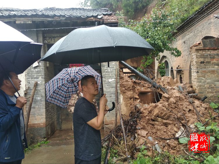 ▲成家川街道两级干部巡查受灾情况,并对地灾户进行安全转移