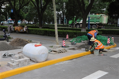 在府西北路、府前街等街巷,记者看到工人们正在紧锣密鼓地进行路面修缮、绿化带补种,小街巷过去的糟糕状况正在一步一步被改变。