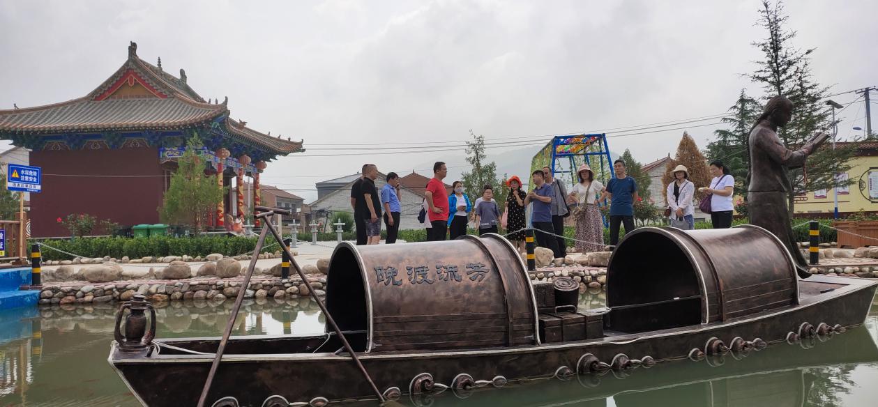 游客参观文化广场“晚渡流芳”