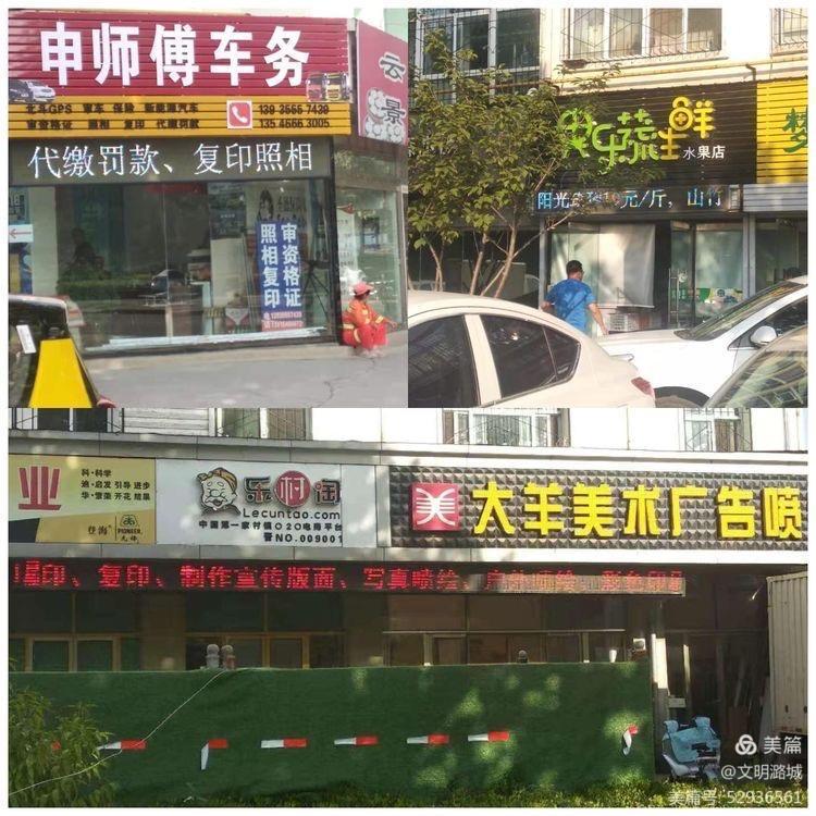 申师傅车务、果乐蔬生鲜、大羊美术广告喷绘电子显示屏没有刊播公益广告,安诺财税、华谊广告电子显示屏公益广告刊播频次低。