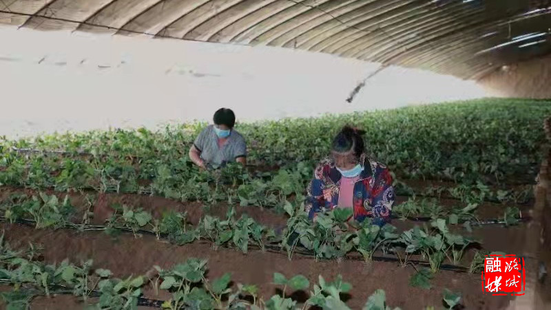 除了正在种植豆角,在基地南边的大棚里,工人们正在完成草莓的种植。