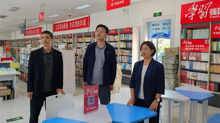 调研中,曹枫详细了解新华书店门店运营情况,对新华书店改造后的布局设置、主题教育图书在醒目位置陈列的做法给予充分肯定。在“学习强国”线下体验空间,曹枫现场体验了“学习强国”线下答题活动,并提出要充分利用好“学习强国”线下体验空间,通过营造学习氛围、增进学习互动、丰富学习活动,吸引市民积极参与、体验,实现线上线下同频共振、相互促进,从而更好地激发广大群众的学习热情,唱响主旋律、传播正能量。