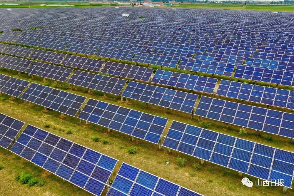 这是位于大同市云州区的光伏电站(2021年8月3日摄,无人机照片)