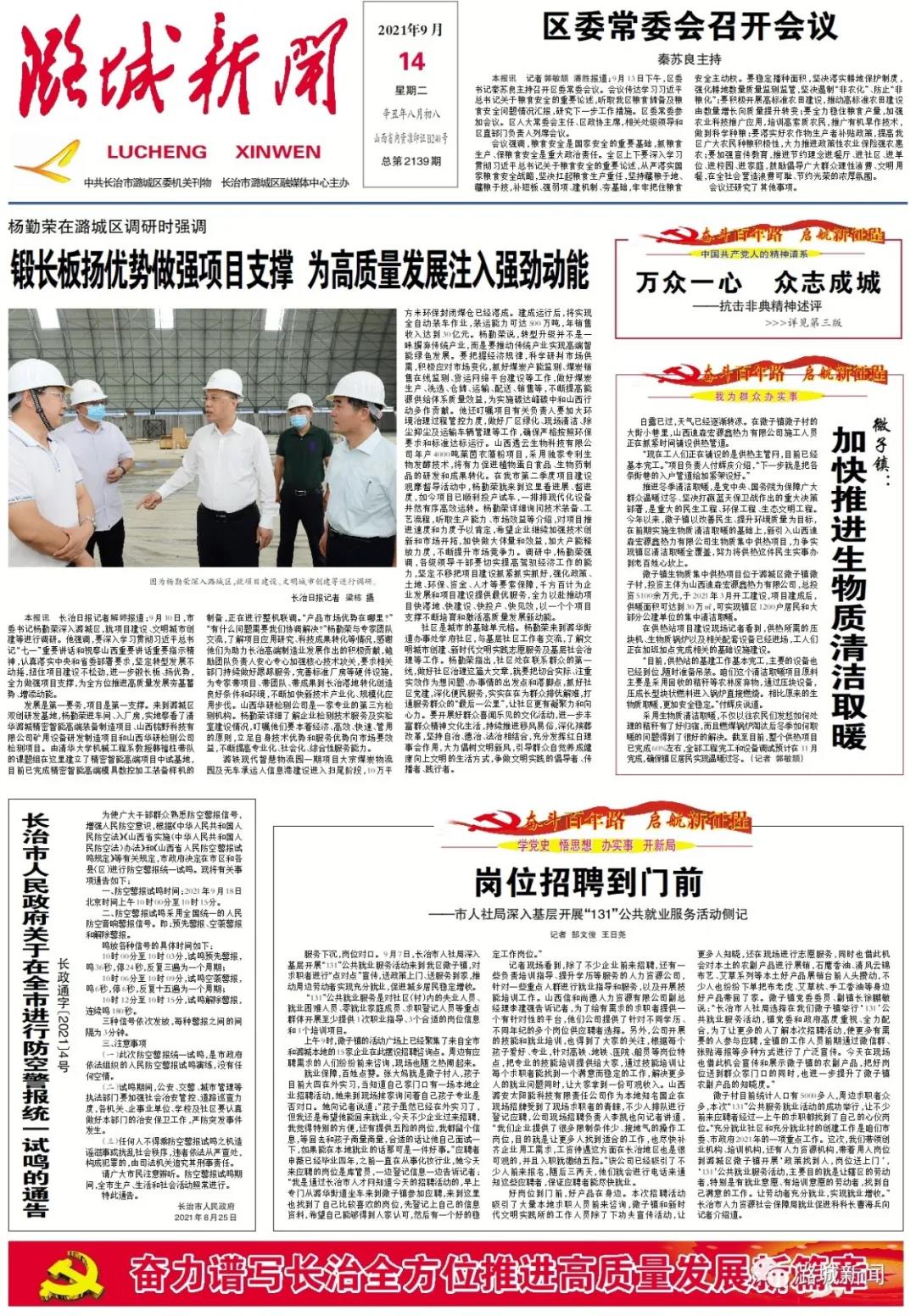 【潞城新闻】数字报2021-9-14