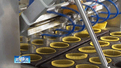 “今年我们引进了新型的烤炉,通过这个观察口便可以随时观察烤炉里面月饼的状况。”美味美食品有限责任公司相关负责人陈筱君介绍道,“而且新设备的智能化程度和节能效果非常好,只需把温度和烘烤时间设定好就可以了。”