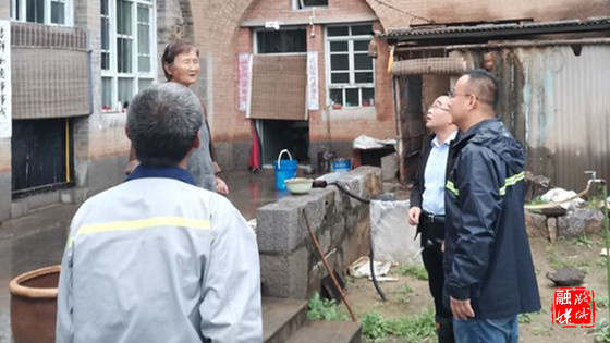 ▲潞华街道负责人深入潞华街道北片实地查看道路、房屋受损情况。