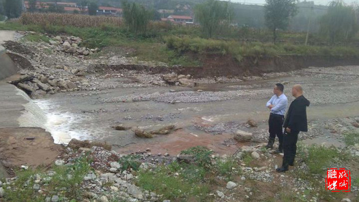 ▲黄牛蹄乡相关负责人实地查看河道通水及雨后受损情况。