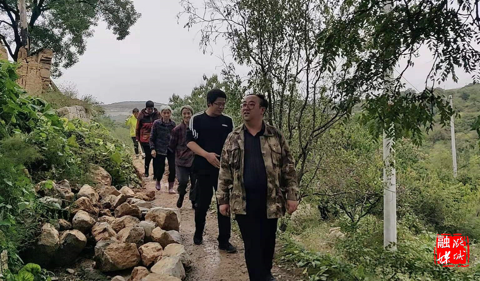 ▲史回镇负责人及镇、村干部进村入户,排查汛期安全隐患,保证群众安全度汛。