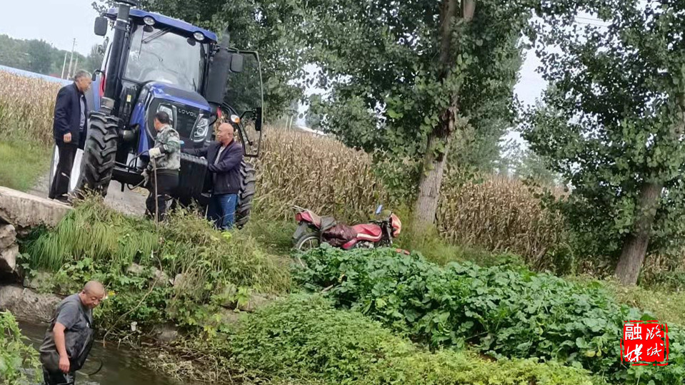 ▲翟店街道南舍村、北舍村党员干部疏浚河道,排除安全隐患,确保汛期河渠排水通畅。