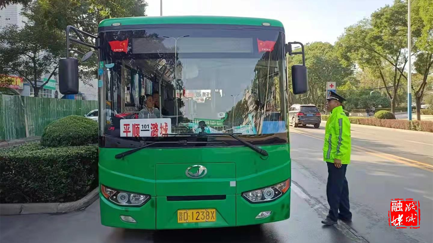 ▲10月1日,潞城交警大队城市中队在潞城区公交公司开展“一盔一带”“一老一少”“驾车不分心”等主题交通安全宣传活动。