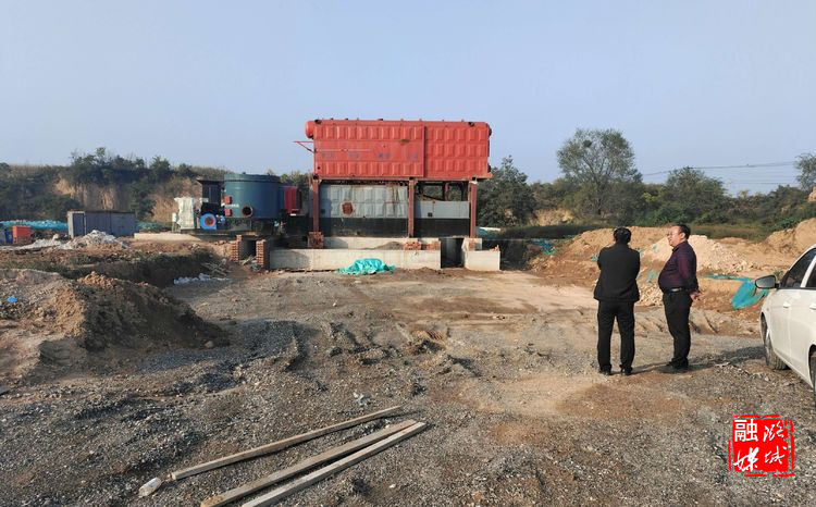 ▲10月1日,微子镇相关负责人实地查看生物质集中供暖项目施工进度,并同企业负责人商讨水毁路段整修方案。