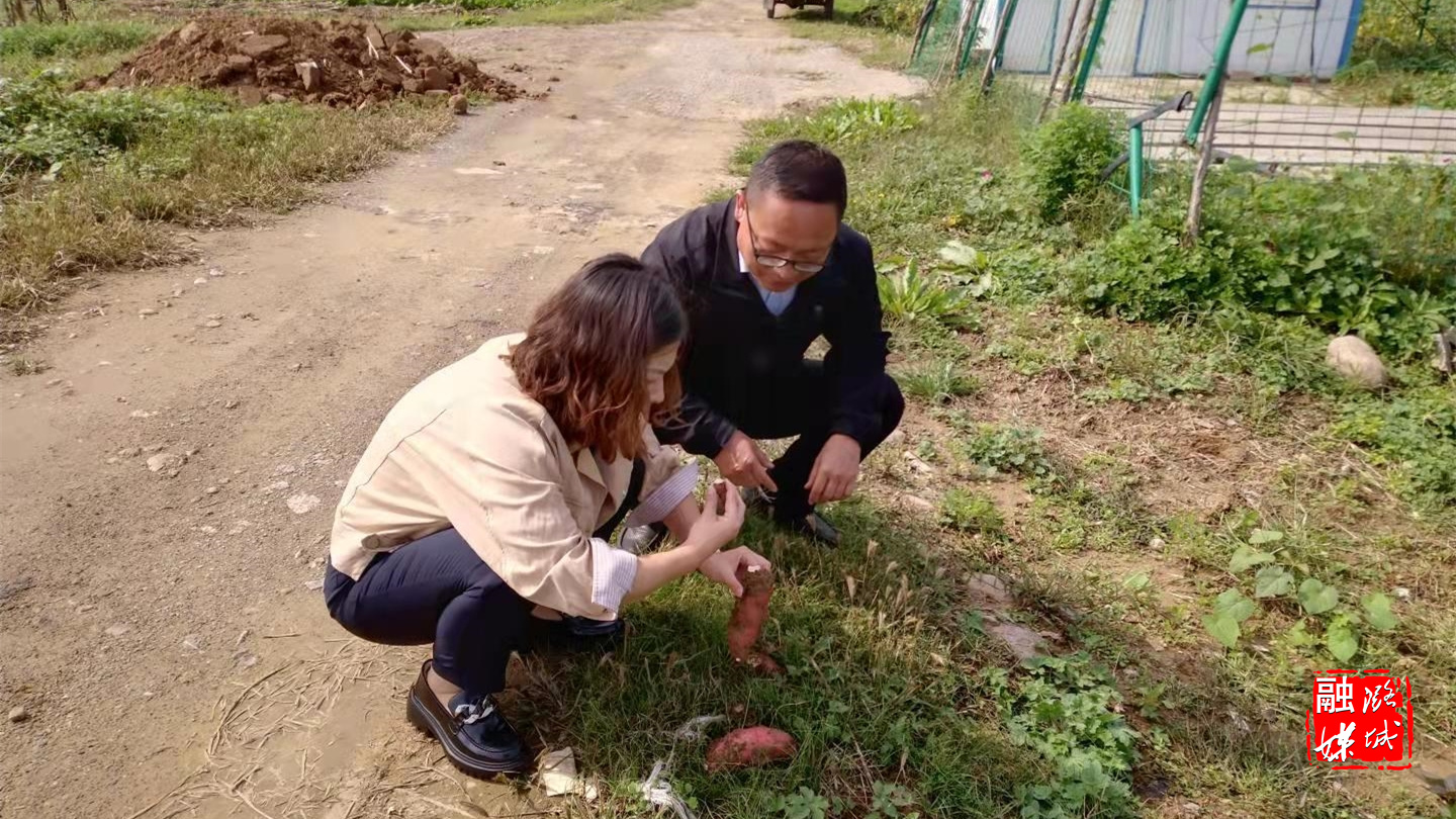 ▲10月1日,辛安泉镇负责人在古城村红薯种植基地实地查看雨后红薯长势。