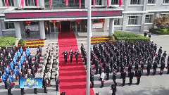 △全场人员列队肃立,面向国旗行礼。