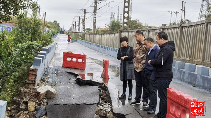 ▲潞华街道负责人在古南关社区查看防汛工作。