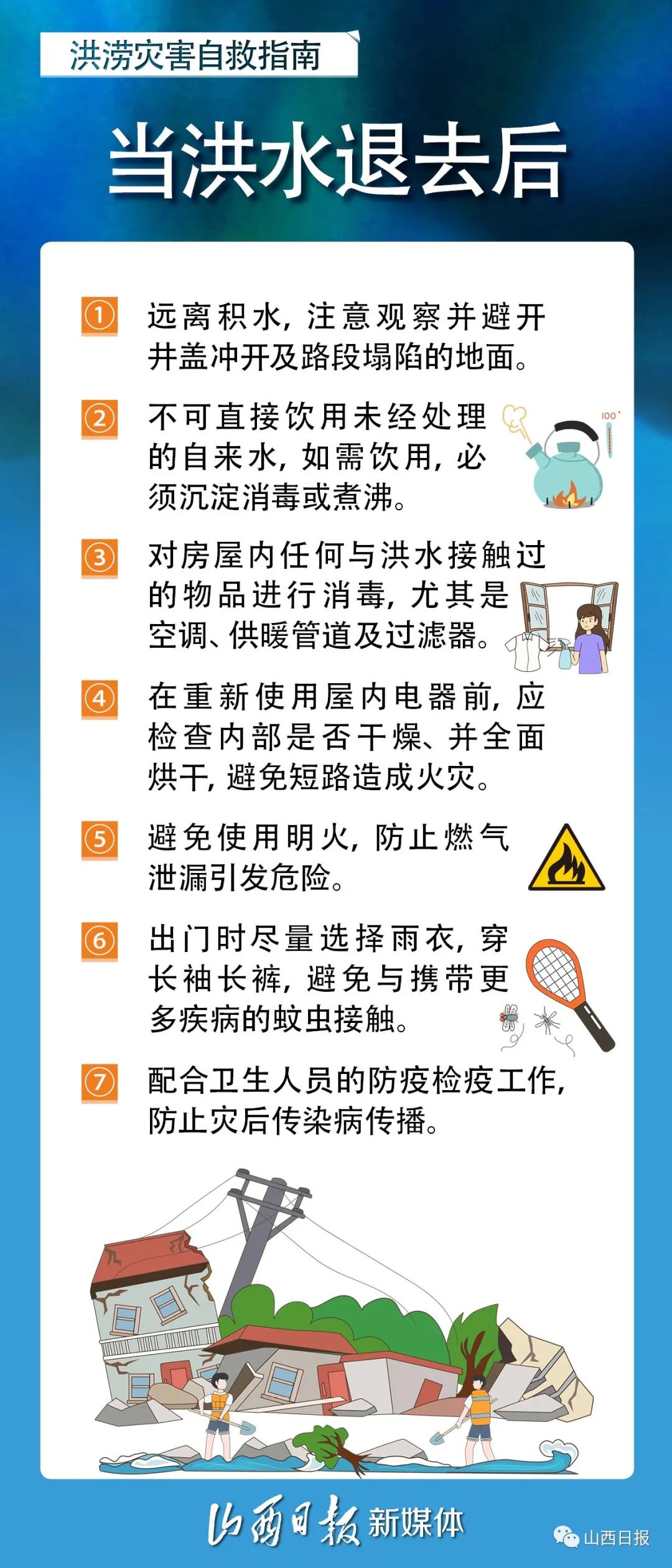 汛期已至,山西多地连续暴雨,部分地区遭受洪水灾害。发生洪水时如何保护好自己的人身安全? 这份洪水防范自救手册,请收好!
