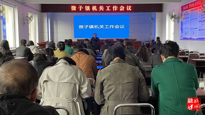 ▲微子镇召开机关工作会议,就村“两委”换届等工作进行安排部署。