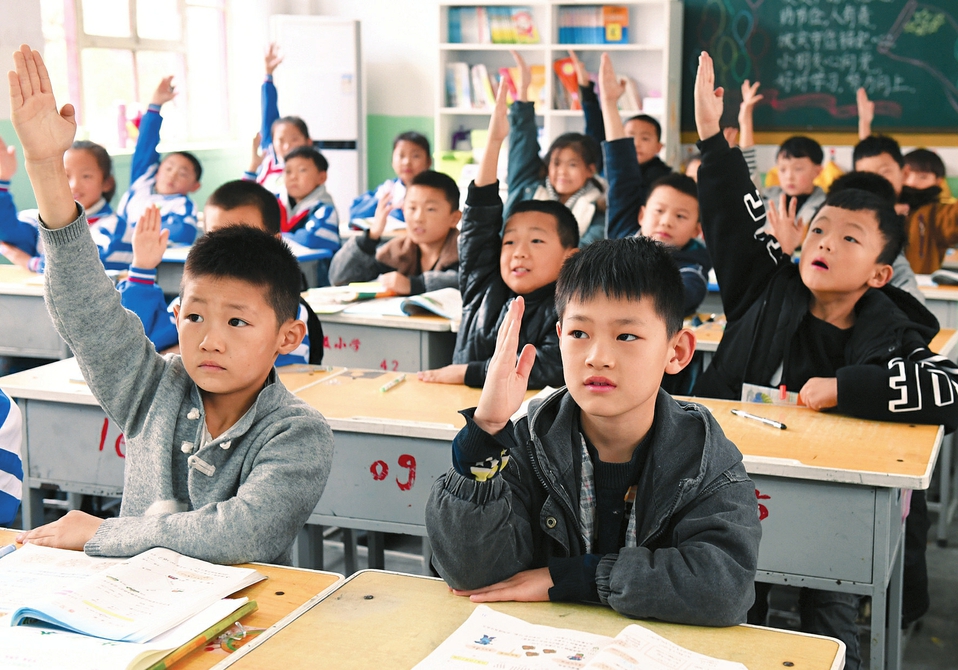 10月11日,稷山县稷峰镇荆平村的学生在安置点吴璧小学上课。受水灾影响,从10月9日开始,该村小学的130名学生和幼儿园的55名幼儿全部安置到相邻的清河镇吴璧小学上课。