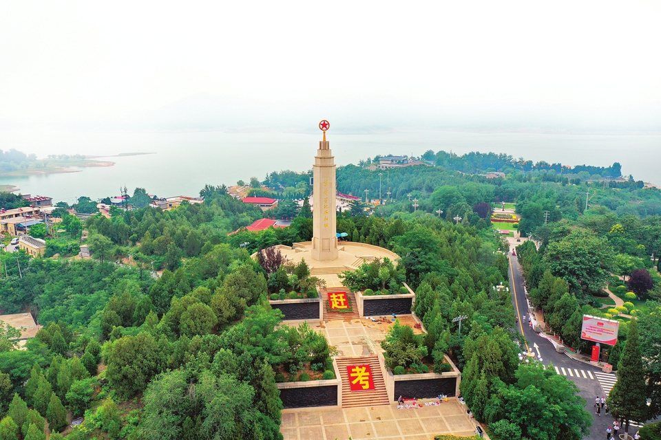 这是6月13日拍摄的河北省平山县西柏坡纪念塔(无人机照片)。 新华社记者 牟宇摄