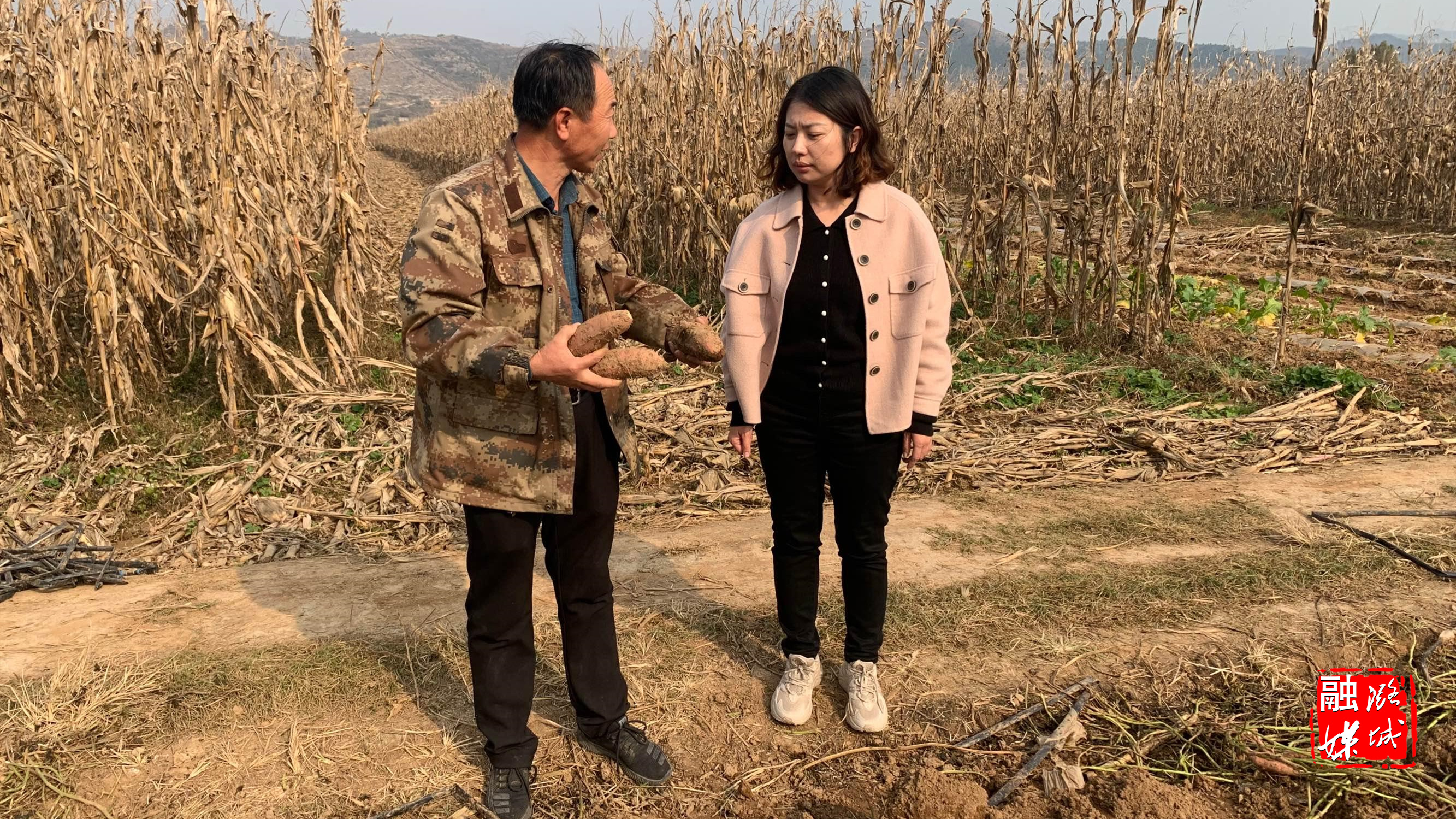 ★10月28日,辛安泉镇负责人在古城村查看红薯秋收情况,并对储藏、销售等工作进行指导。