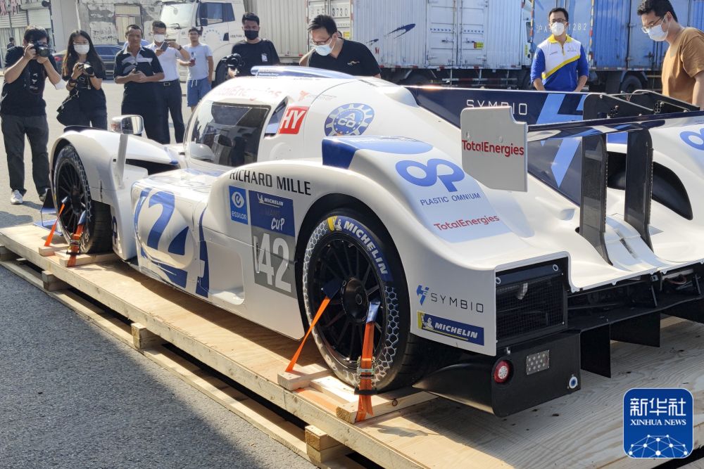 第四届进博会首批进境展品米其林氢能源赛车样车在上海完成通关验放(9月27日摄)。新华社发