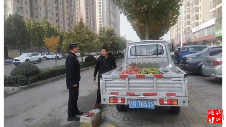 ▲10月29日,区城市综合管理综合行政执法局(筹)工作人员劝阻商贩占道经营行为,整治乱堆乱放。