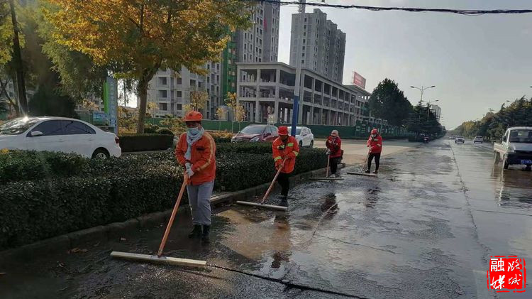 ▲10月29日,区园林环卫中心对道路路面大清洗。