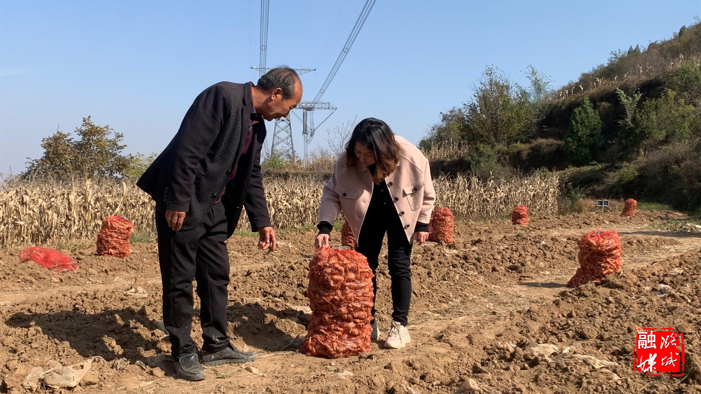 ★10月30日,辛安泉镇负责人在山西维康德济中药材种植基地实地查看地黄秋收情况。