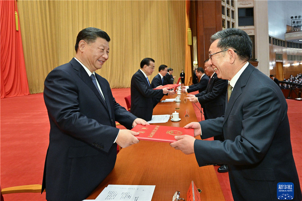 上午10时20分,大会在雄壮的国歌声中开始。在热烈的掌声中,中共中央总书记、国家主席、中央军委主席习近平首先向获得2020年度国家最高科学技术奖的中国航空工业集团有限公司顾诵芬院士和清华大学王大中院士颁发奖章、证书,同他们热情握手表示祝贺,并请他们到主席台就座。随后,习近平等党和国家领导人同两位最高奖获得者一道,为获得国家自然科学奖、国家技术发明奖、国家科学技术进步奖的代表颁发证书。