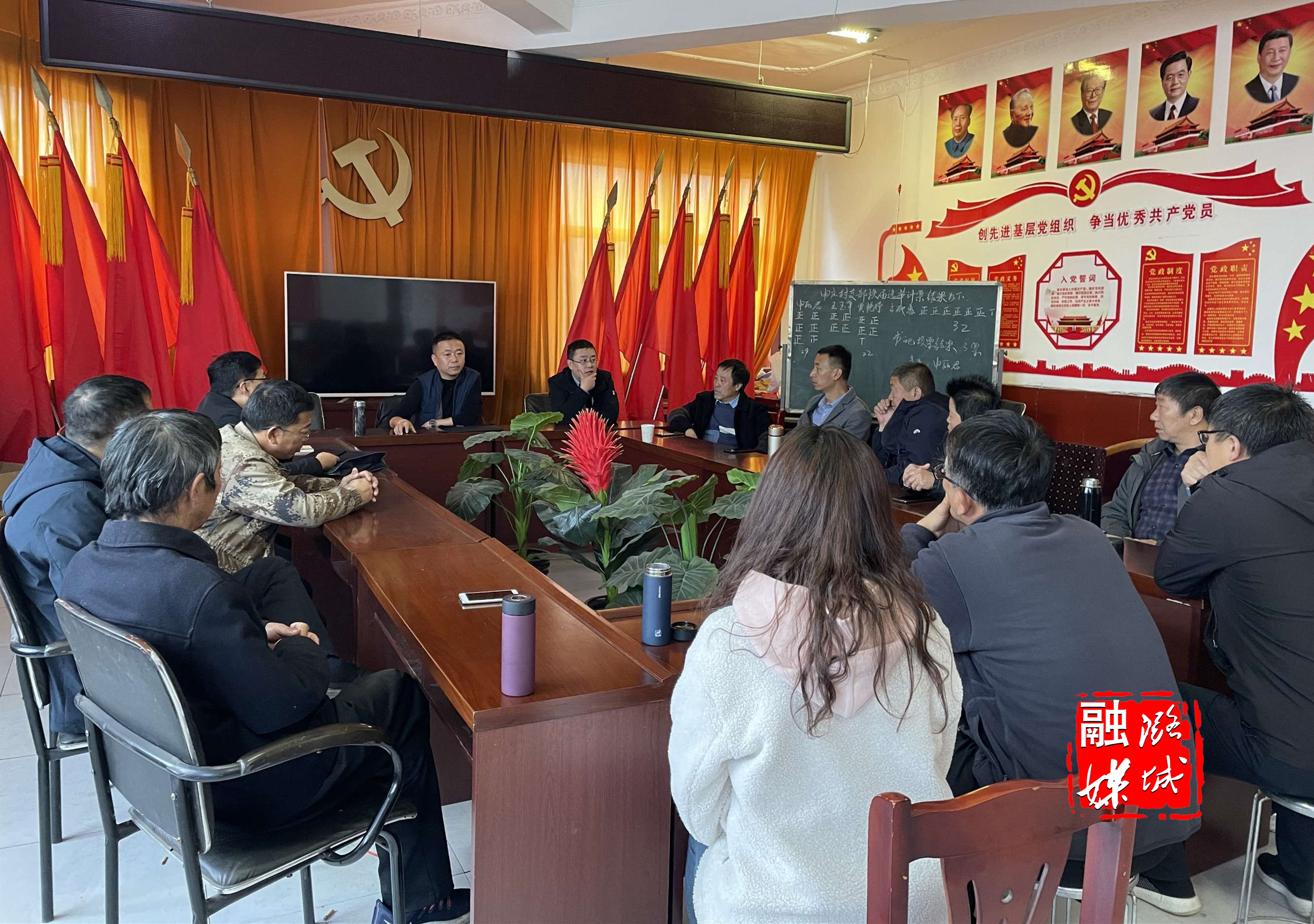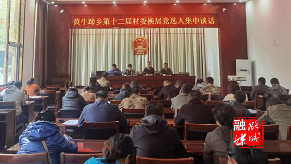 ▲黄牛蹄乡召开第十二届村委换届竞选人集中谈话会议。