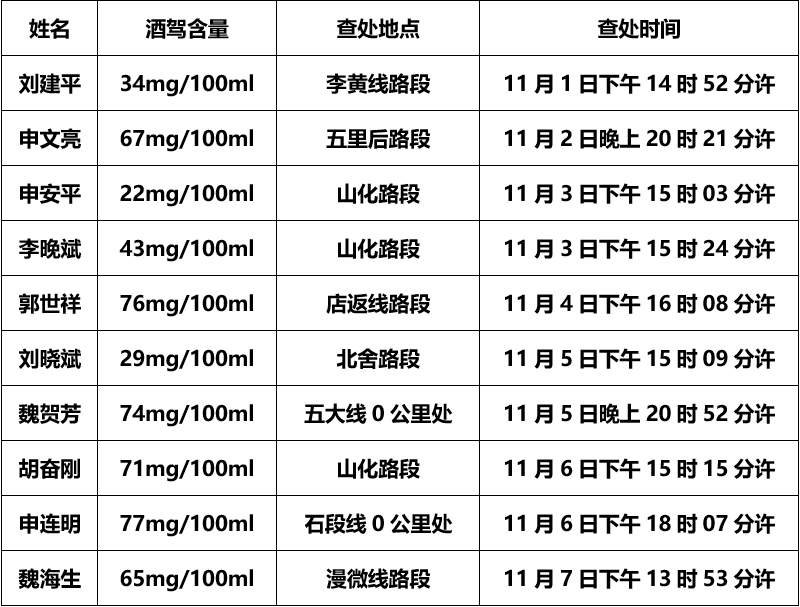潞城交警大队对以下酒驾、醉驾的违法人员进行曝光,请广大驾驶员牢记“酒后不开车,开车不喝酒”,为家人负责、为自己负责、为社会负责,远离酒驾,珍爱生命。