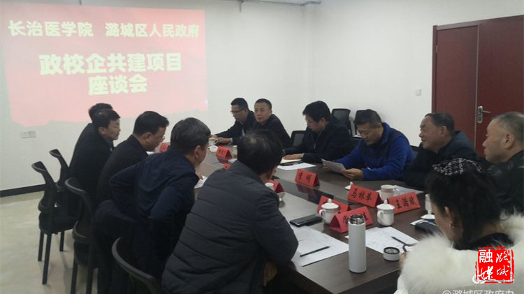 ★11月9日,区委书记秦苏良,区委常委、常务副区长李明,副区长杜进才与长治市医学院党委副书记、院长王金胜一行在大健康公共服务基地召开政校企共建项目座谈会。