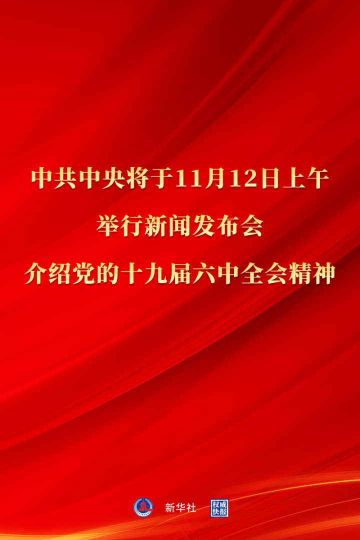 中共中央将于11月12日上午10时举行新闻发布会