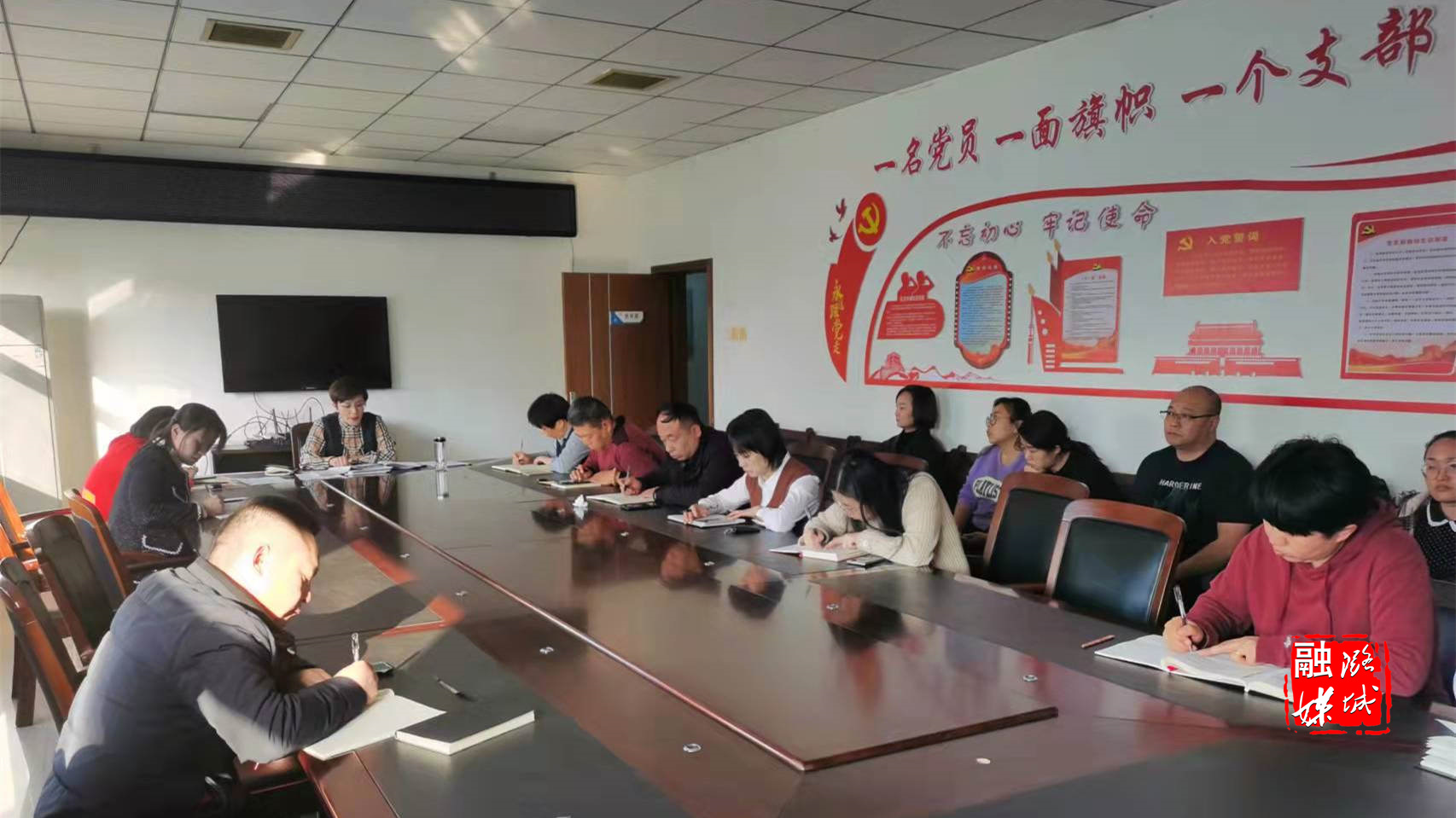 ▲11月15日,辛安泉镇相关负责人在上村就“两委”换届等工作进行安排。
