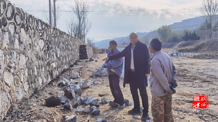 ★11月15日,黄牛蹄乡工作人员到李庄村河道查看河坝修复工作。