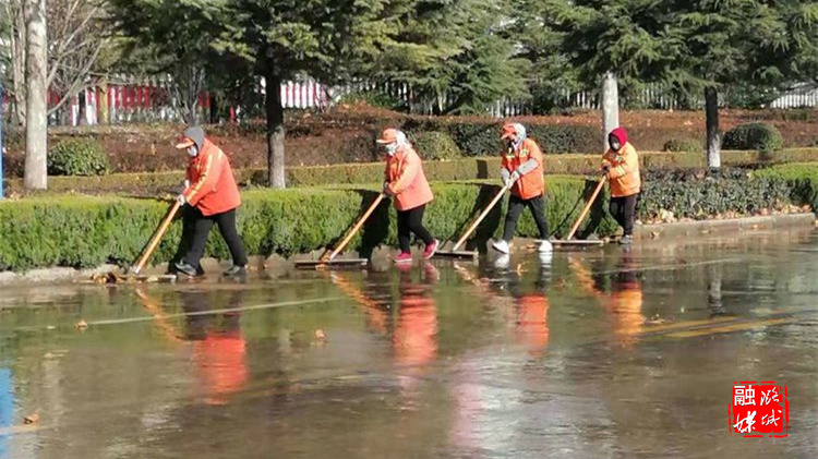 ▲11月21日,区园林环卫中心组织工作人员清洗路面。