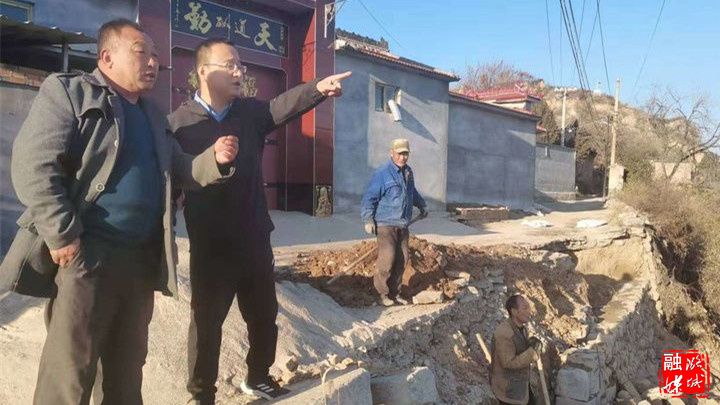 ▲1月23日,潞华街道负责人在山底村对危房灾后重建工作进行检查。