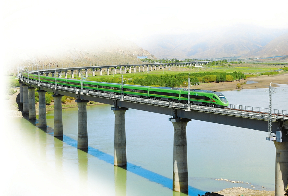 试运行的复兴号列车行驶在桑日县境内(6月8日摄)。 新华社记者普布扎西摄