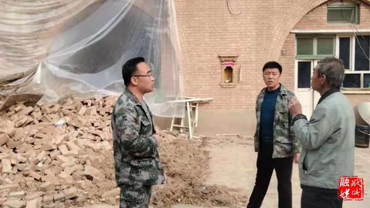 ▲黄牛蹄乡相关负责人到青口村督促灾后重建工作。