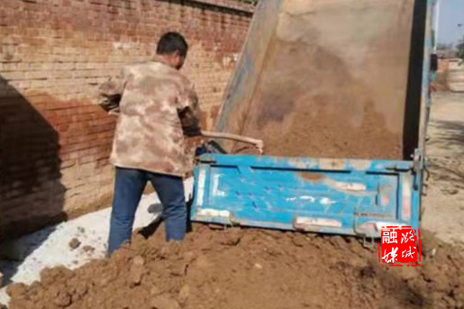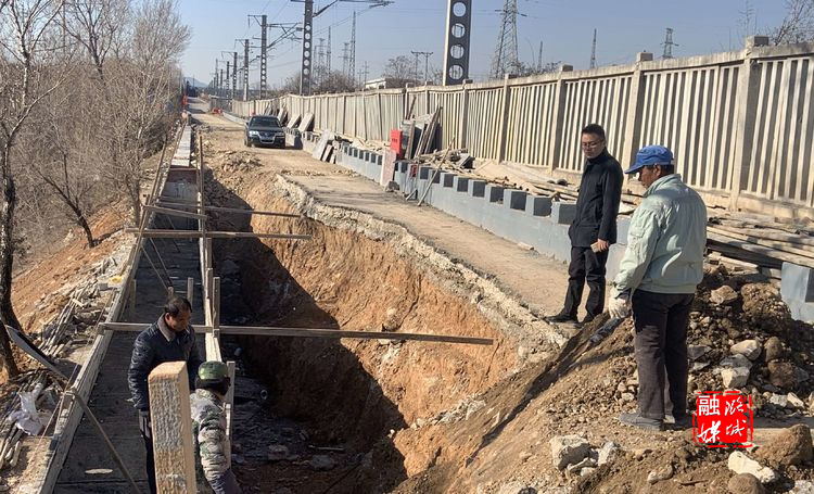 ▲微子镇负责人实地查看冯村进村路修复进度。