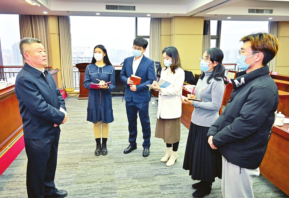宣讲结束后,宣讲团成员与师生代表面对面交流。本报记者刘通摄