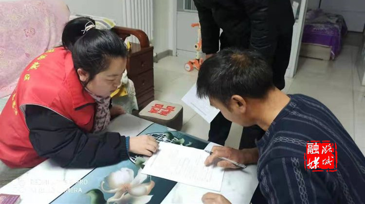 ▲潞华街道东华、南华与西华社区工作人员及小区指导员入户填写创建全国文明城市调查问卷,提高住户知晓率。