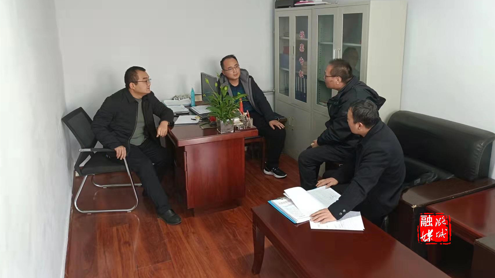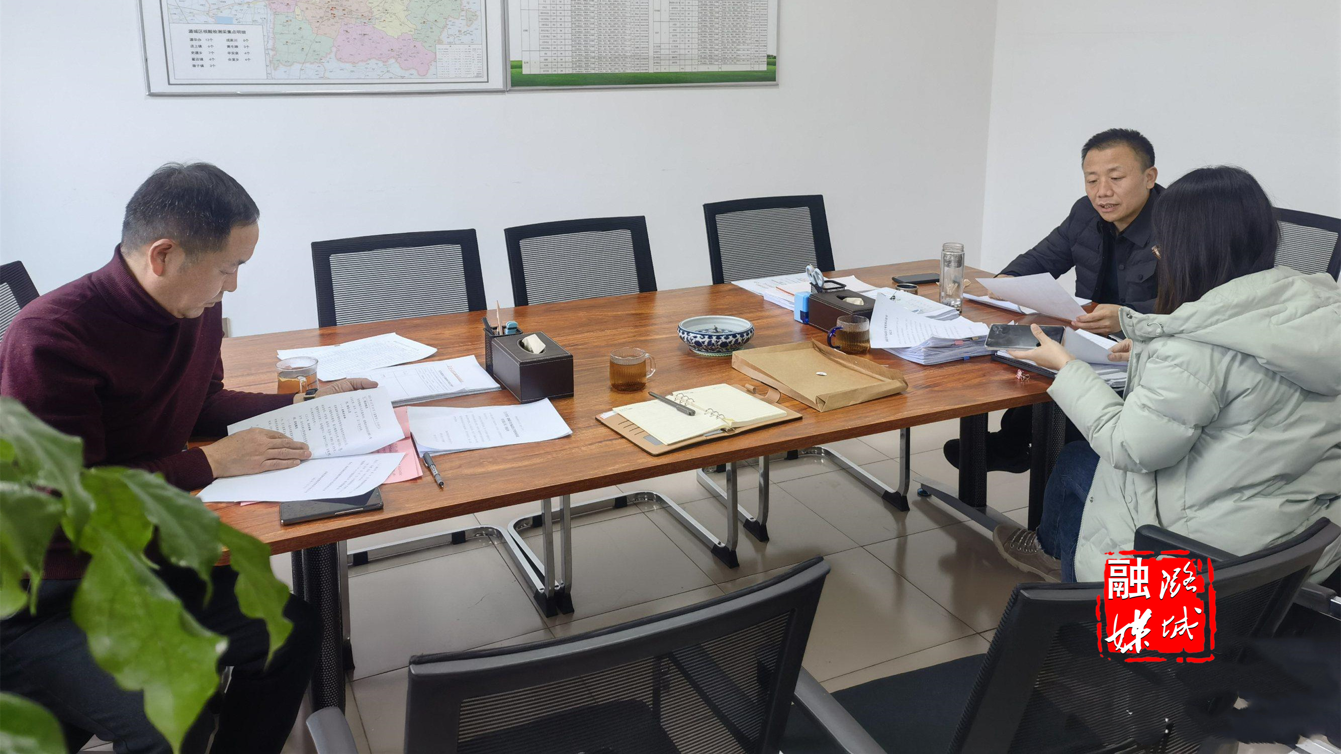 ★12月15日,成家川街道负责人同区林业局工作人员商讨林业相关工作。