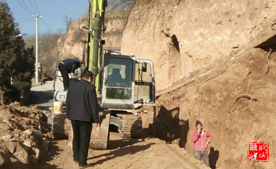 ▲微子镇李园村组织机械整修村内水毁路段。