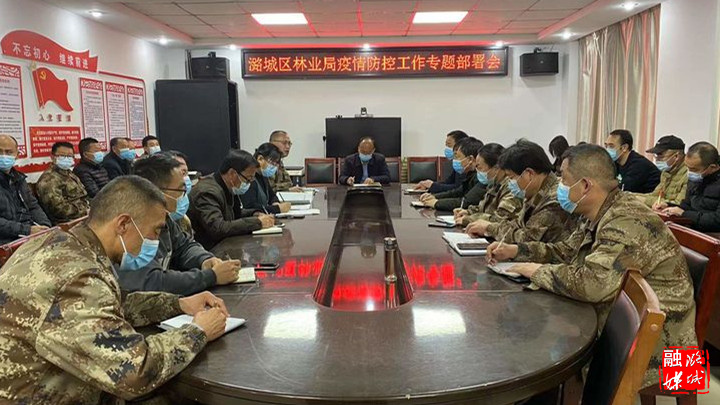 ▲区林业局召开疫情防控工作专题部署会,传达省、市、区委疫情防控会议精神。
